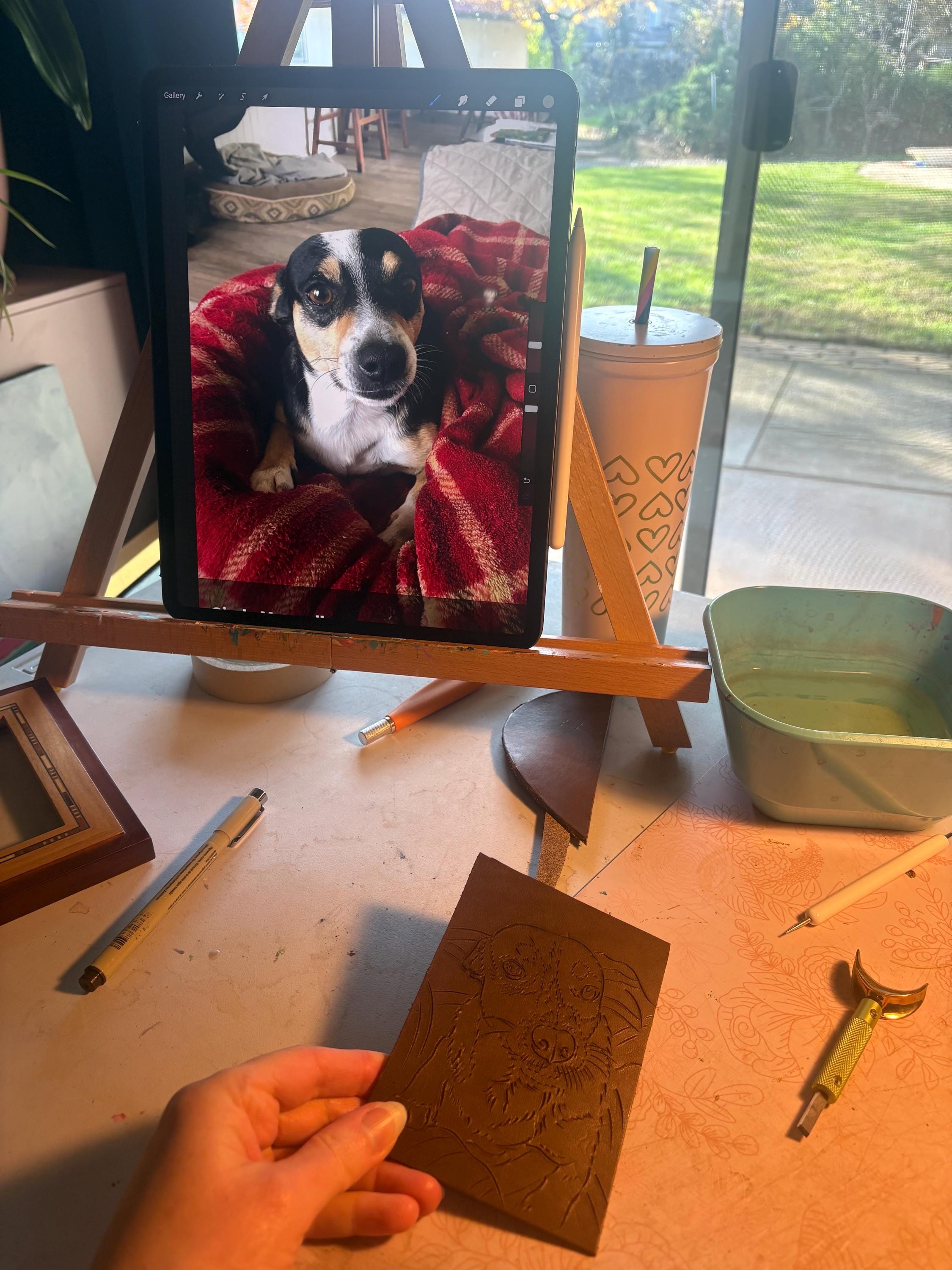 My custom portraits are carved into leather and hand-painted to capture the essence of your beloved animal friend!